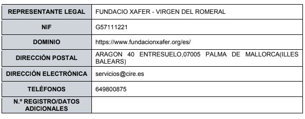 Presentación de un escrito a la dirección ARAGON 40 ENTRESUELO,07005 PALMA DE MALLORCA(ILLES BALEARS) (a la atención de FUNDACIO XAFER – VIRGEN DEL ROMERAL) o bien a través de correo electrónico a por correo electrónico a servicios@cire.es