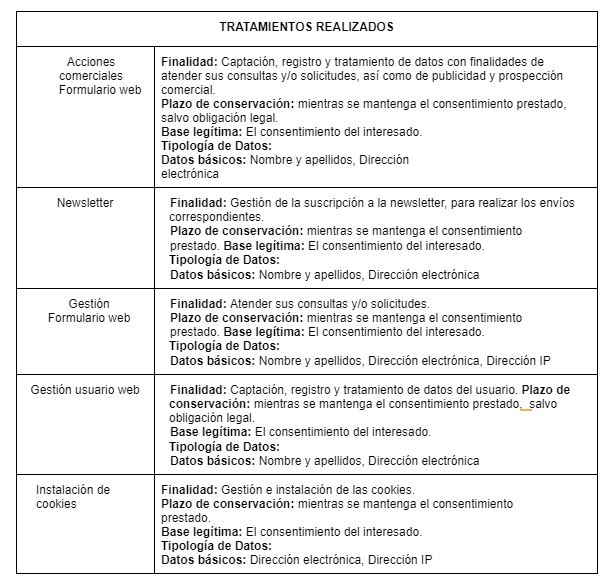 - Derecho de Oposición: Es el derecho del usuario a que no se lleve a cabo el tratamiento de sus datos de carácter personal o se cese el tratamiento de los mismos por parte del sitio web cuando el tratamiento esté basado en el interés legítimo o el interés público o cuando se trate de tratamientos de mercadotecnia directa.